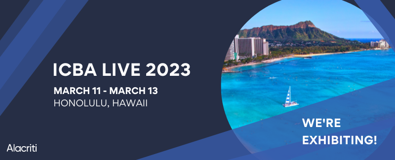 Alacriti is excited to attend and exhibit at ICBA LIVE 2023, the largest annual gathering of community bankers. Attendees will have access to informative programs on current community bank topics as well as the expo hall, which will feature over 200 leading products and service providers.