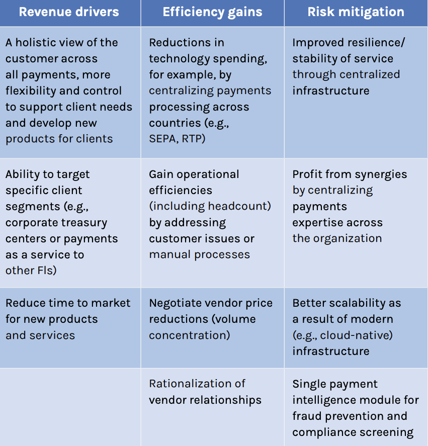 Several factors are propelling the adoption of payments hubs: