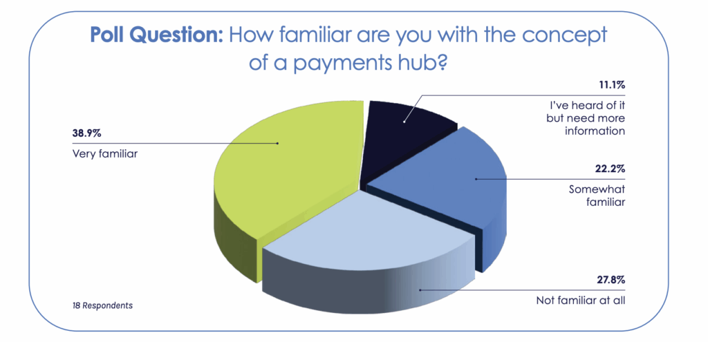 To gauge the audience’s familiarity with payments hubs, a live poll was conducted during the webinar: