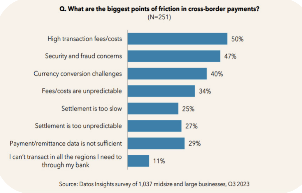 Global B2B payments demand precision, compliance, and speed. According to a Datos Insight survey, Fedwire Migration and ISO 20022 Readiness, some of the main concerns around cross-border payments are around high costs, security and fraud, and slow settlements.