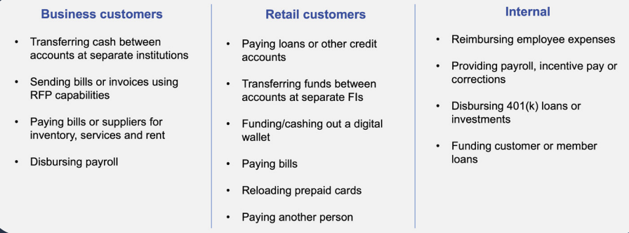 Before walking through the high-value use cases, O’Malley noted, “It’s important to note that we’ve purposely made the services I’ve referenced earlier use case agnostic, meaning that FedNow payments, including requests for payments, can be used to enable any sort of payment style, as long as there’s an RTN or ABN account number associated with it.”