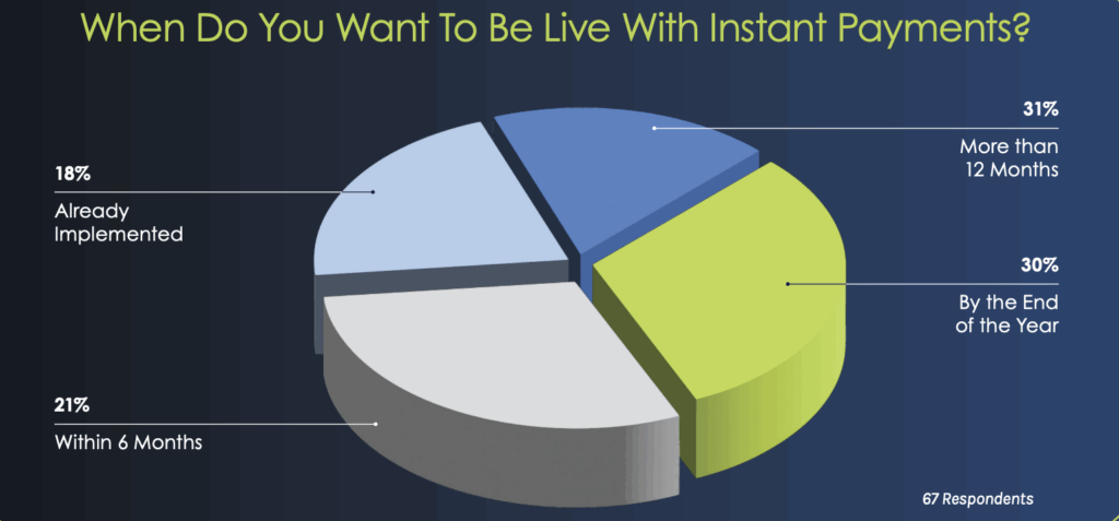 During the webinar, a poll was conducted to gauge participants’ readiness to go live with instant payments. The poll results revealed significant interest in implementing instant payments quickly. Approximately 50% of respondents indicated they plan to go live with instant payments either by the end of the year or within the next six months. Steinbrecher reflected on these results, stating, “I would say this is in line with what we’re seeing in the market. The demand for instant payments is high, and institutions are eager to adopt these systems as soon as possible.”