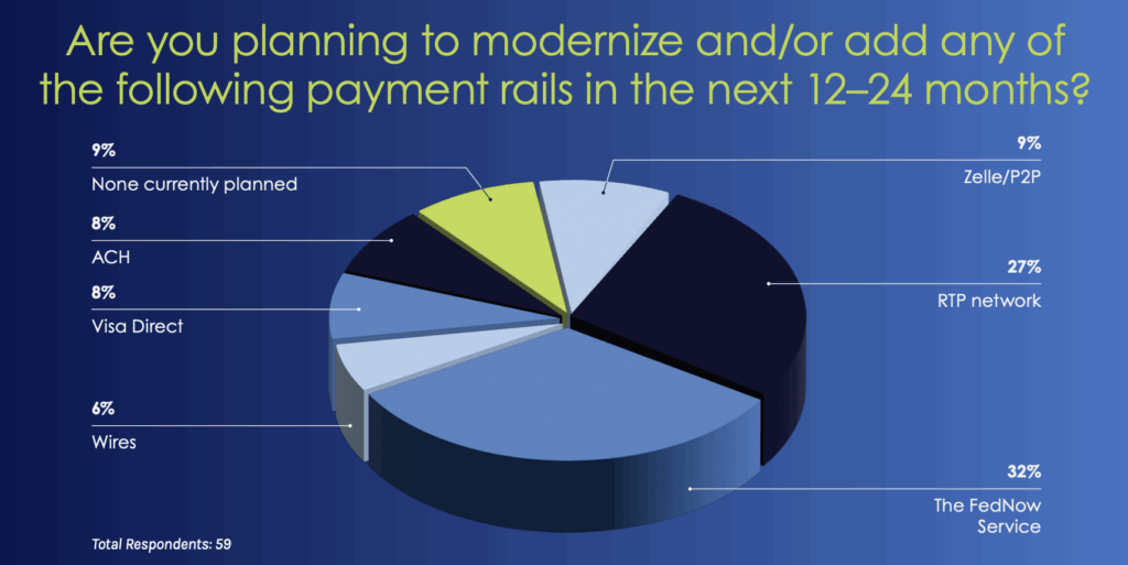The results illustrated that instant payments are taking center stage in modernization strategies for financial institutions. Realtime rails like RTP and FedNow are quickly emerging as table stakes for institutions aiming to meet the speed, transparency, and 24/7 availability expectations of today’s customers.