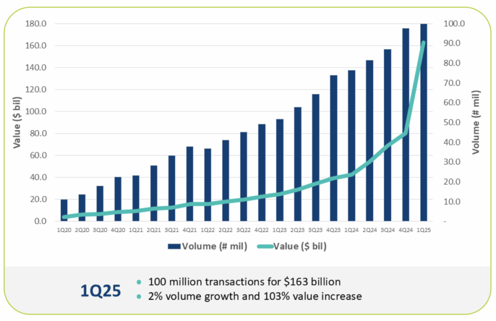 Yet modernization doesn’t mean abandoning ACH. “The ‘powerhouse’ of U.S. payments, ACH, is not going away. It’s actually growing,” Gupta emphasized. Overall, ACH volume rose almost 7% year-over-year, with Same Day ACH up almost 50%.
