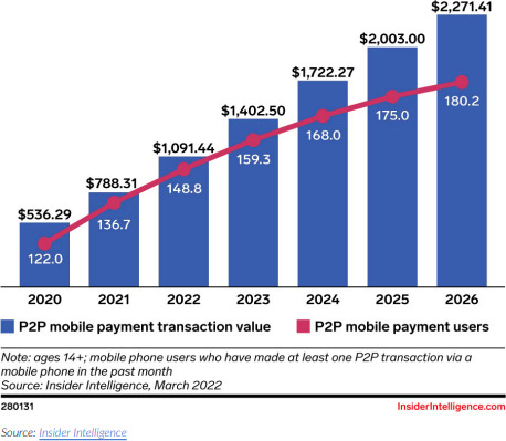US Mobile Peer-to-Peer (P2P) Payment Transaction Value and Users