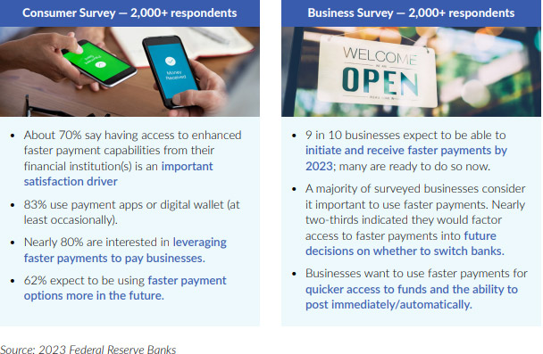 The Federal Reserve has also presented survey information that indicates demand for real-time payments, making a clear case for the importance of real-time payments for accountholder retention.