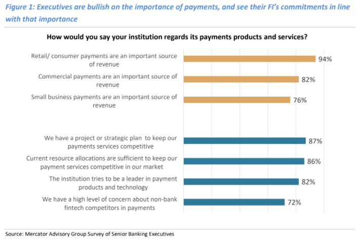 - Banking executive attitudes toward the centrality of payments businesses and technological modernization efforts.