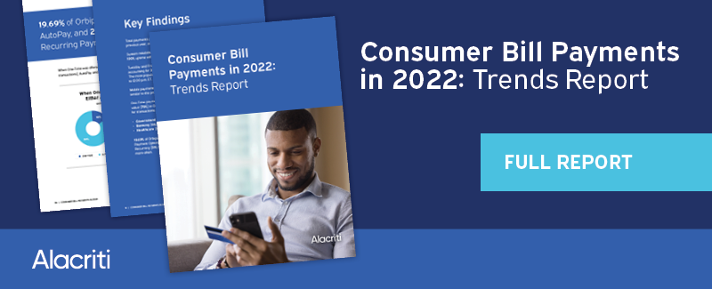 Our solution enables us to collect anonymous data on consumers’ bill payment behaviors. We have compiled a collection of online bill payment analyses that can serve our customers and the payment industry at large in understanding today’s bill pay environment and the needs and expectations of today’s consumers. Download this report to Unlock valuable insights.