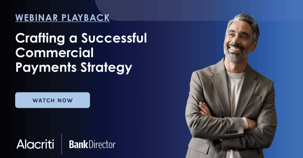 In this Bank Director–hosted webinar featuring Neeraj Gupta and Mark Majeske from Alacriti, discuss how banks and credit unions can rethink their approach to commercial payments.
