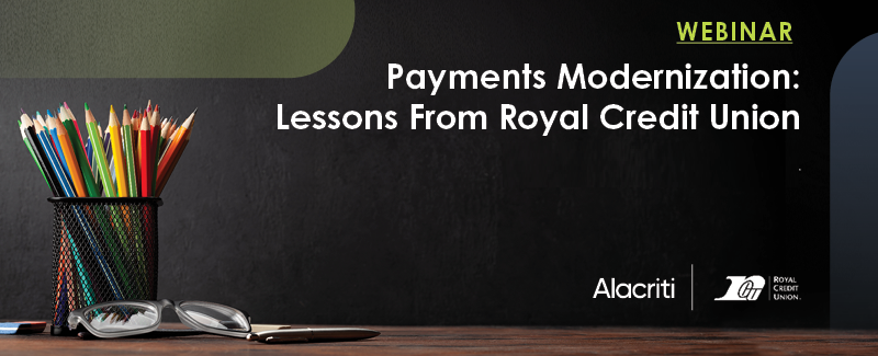 Watch this CUInsight-hosted webinar where Jeni Brantner, Vice President of Payments at Royal Credit Union, shares the credit union’s experience with payments modernization alongside Stuart Bain, SVP of Product Management at Alacriti, and Mark Majeske, SVP Faster Payments at Alacriti.